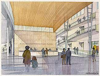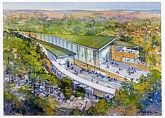 Here we go. Just found these. According to the video report, the building will be placed into the side of an old quarry (there is a parking lot there now), and much of it will be underground. I think this is very cool. Yes, it is quite modernistic and I usually don't care for that, but for some reason I like this. It looks to the future, while explaining the past. What do youse-all think?