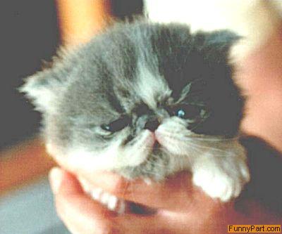 he opens his mouth to meow, he doesn't just empty a room -- he causes