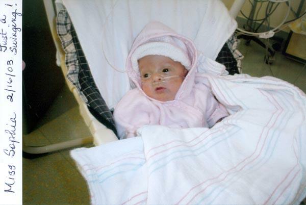 This is little Sophia RosaMaria, currently just over 4 months old. The hospital has been the only home she's known ... 01/20/03 |